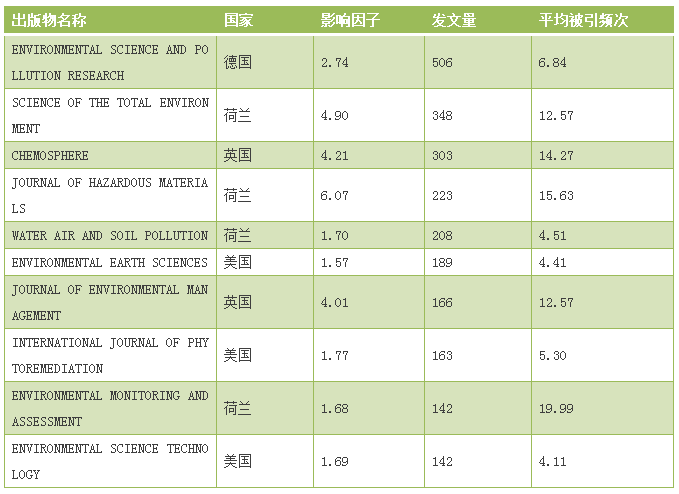 表2 世界土壤污染防治論文高發(fā)文期刊top 10