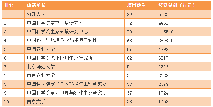 表7:國家自然科學基金項目申請機構排名TOP10
