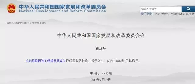 剛剛!發(fā)改委正式發(fā)布《必須招標(biāo)的工程項(xiàng)目規(guī)定》,6月1日起施行