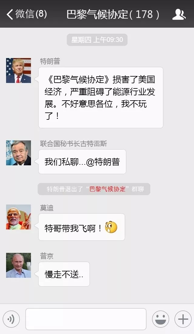 這家伙退完群還很無恥地說“氣候變暖”是中國人創(chuàng)造的一個(gè)騙局。
