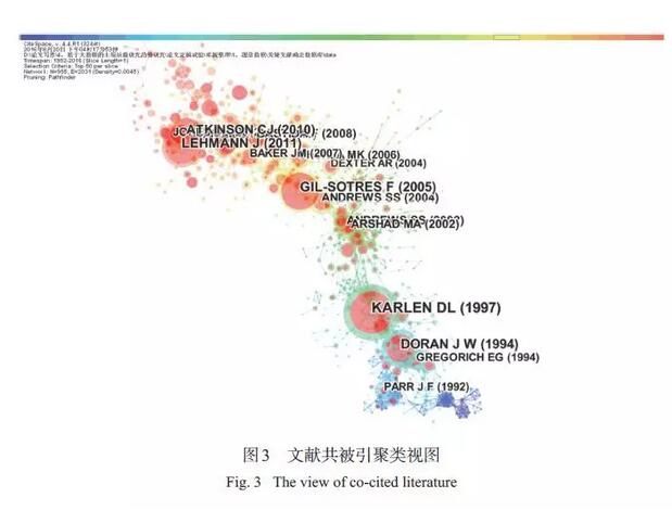 摘 要:論文利用文獻計量學方法定量分析了土壤質量研究領域的科學文獻,結果顯示國際土壤質量研究熱點從有機質及其組分對管理措施的響應、微生物指標敏感性、土壤質量定義到土壤質量評價方法、評價指標和框架的完善,在農業(yè)生產和環(huán)境保護中的應用性不斷加強。