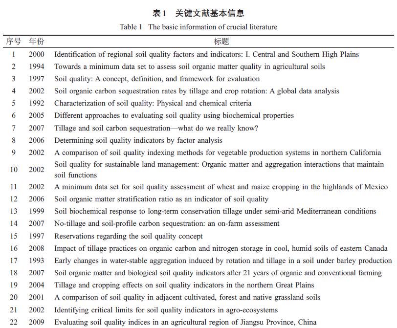 進入20 世紀90 年代以來,國際上關于土壤質量研究的文獻大量涌現(xiàn),涉及的學科和內容非常廣泛。目前針對土壤質量相關文獻的綜述已有不少,其中國外學者就土壤質量概念與應用、評價指標、耕作、種植制度、作物殘茬管理對土壤質量的影響等方面展開評述;國內對土壤質量研究綜述多集中在土壤質量評價方法、指標、標準以及可持續(xù)土地管理方面。這些研究綜述的發(fā)表對國內外學者了解以及推動土壤質量研究發(fā)揮了重要作用。但是面對成千上萬的龐大文獻群,以文獻閱讀、總結歸納、定性探討為主要方法的傳統(tǒng)文獻綜述存在明顯的局限性,如Karlen 等、Sparrow 等、Sithole 等僅就土壤質量的某個方面進行了文獻綜述,其參考價值的高低也取決于研究者本身的研究水平,無法客觀、全面地反映該領域的發(fā)展脈絡以及研究趨勢。因此,還需要采用更為科學的方法對以上問題做進一步的分析和探討。
