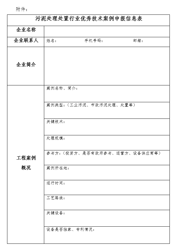附件:污泥處理處置行業(yè)優(yōu)秀技術(shù)案例申報信息表