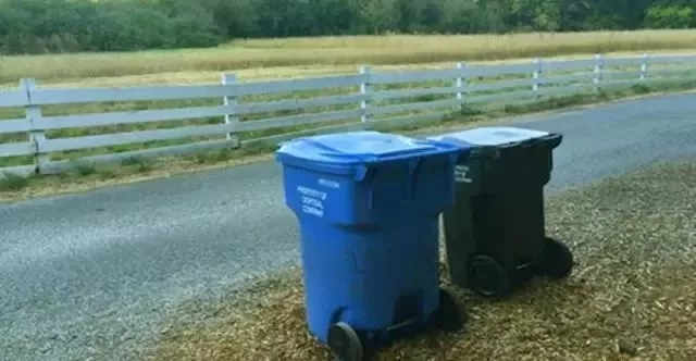 在美國鄉(xiāng)村,每家每戶都有一個帶輪子的垃圾箱,
