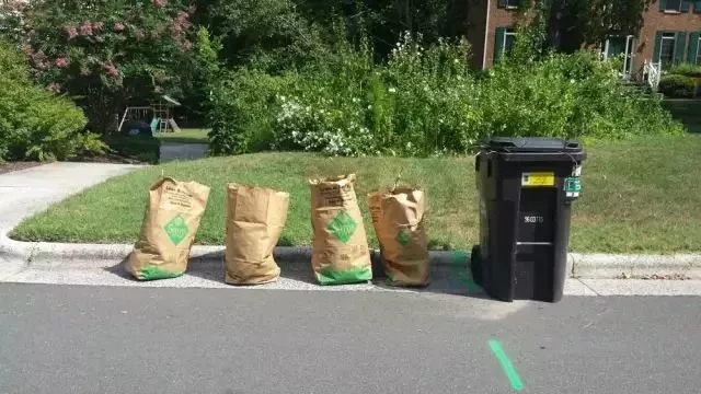 雜草與落葉由每個家庭成袋堆放在自家周圍。