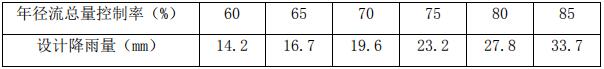 各海綿分區(qū)年徑流量控制指標詳下表: