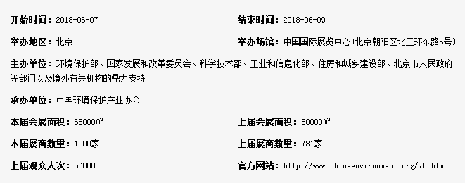 中國國際環(huán)保展覽會(huì)(英文縮寫CIEPEC)始于1986年,在環(huán)境保護(hù)部、國家發(fā)展和改革委員會(huì)、科學(xué)技術(shù)部、工業(yè)和信息化部、住房和城鄉(xiāng)建設(shè)部、北京市人民政府等部門以及境外有關(guān)機(jī)構(gòu)的鼎力支持下,已成功舉辦十五屆。CIEPEC歷經(jīng)三十年的成長(zhǎng)壯大,不僅見證了我國環(huán)保產(chǎn)業(yè)的發(fā)展歷程,為我國環(huán)境保護(hù)工作提供了重要技術(shù)和裝備支撐,還構(gòu)筑了國內(nèi)外環(huán)保機(jī)構(gòu)和企業(yè)溝通與交流的平臺(tái),被譽(yù)為了解中國環(huán)保市場(chǎng)的重要窗口,進(jìn)入中國環(huán)保市場(chǎng)的最佳渠道。 CIEPEC環(huán)保展始終緊密結(jié)合我國環(huán)保熱點(diǎn)難點(diǎn)問題,為參展企業(yè)和專業(yè)觀眾及時(shí)了解國內(nèi)外環(huán)保產(chǎn)業(yè)發(fā)展趨勢(shì),建立合作伙伴關(guān)系搭建高端業(yè)內(nèi)交流平臺(tái)。