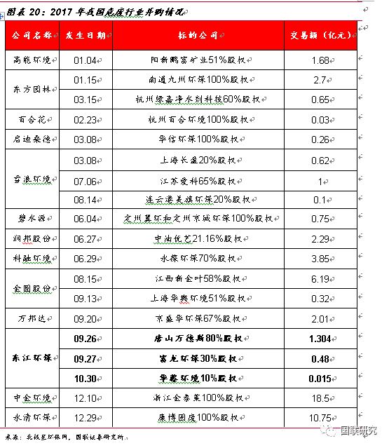 行業(yè)并購(gòu)熱度高,進(jìn)入群雄逐鹿時(shí)代。在過去的2017年,我國(guó)危廢行業(yè)兼并購(gòu)市場(chǎng)火爆,整個(gè)環(huán)保產(chǎn)業(yè)共發(fā)生86起并購(gòu),交易金額達(dá)385億元,交易金額與數(shù)量均創(chuàng)新高,其中涉及到危廢的并購(gòu)市場(chǎng)達(dá)20余起。