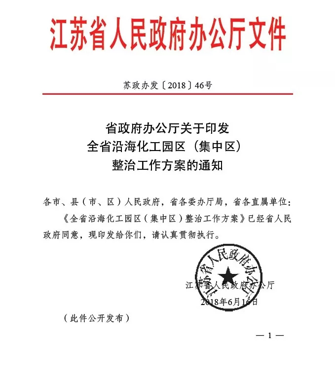 日前,江蘇省辦公廳印發(fā)了《全省沿?;@區(qū)(集中區(qū))整治工作方案的通知》(蘇政辦發(fā)【2018】46號,下稱46號文),文件要求對沿海地區(qū)南通、連云港、鹽城三市轄區(qū)內(nèi)所有化工園區(qū)及園區(qū)內(nèi)所有化工生產(chǎn)企業(yè)進(jìn)行整治。另有消息稱,江蘇省環(huán)保廳也下發(fā)了復(fù)產(chǎn)通知,對園區(qū)和企業(yè)環(huán)保達(dá)標(biāo)做出具體規(guī)定。
