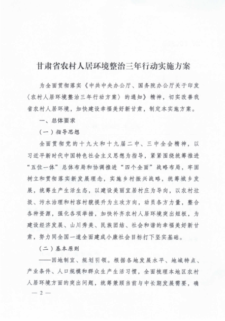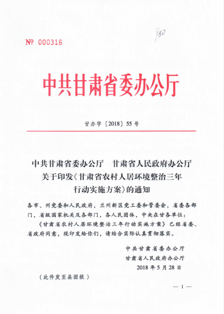 中共甘肅省委辦公廳甘肅省人民政府辦公廳關(guān)于印發(fā)《甘肅省農(nóng)村人居環(huán)境整治三年行動(dòng)實(shí)施方案》的通知