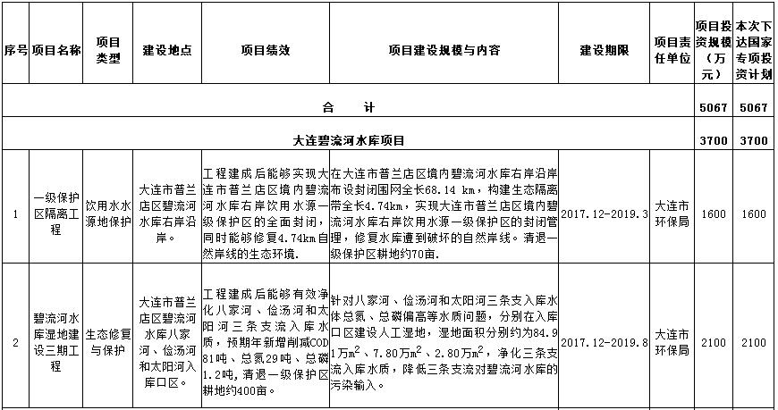 一、項目主要內容:本次安排全部為中央資金,共投資5067萬元,其中碧流河水庫3700萬元,安排2個項目,水豐湖1367萬元,安排4個項目。