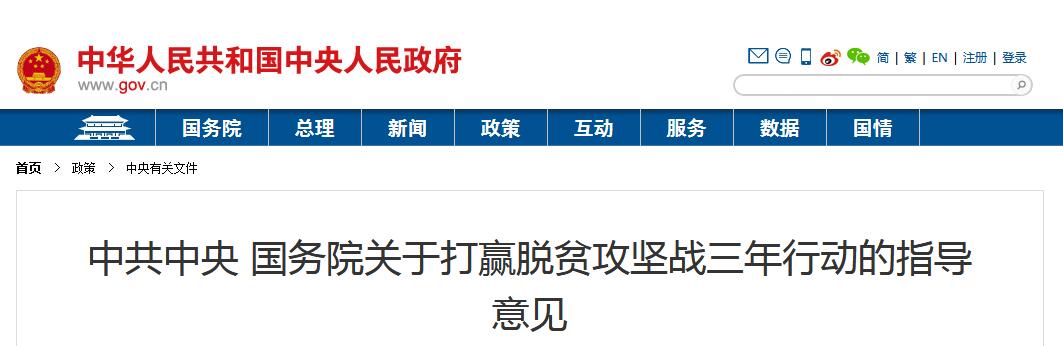 中共中央 國務(wù)院關(guān)于打贏脫貧攻堅戰(zhàn)三年行動的指導(dǎo)意見