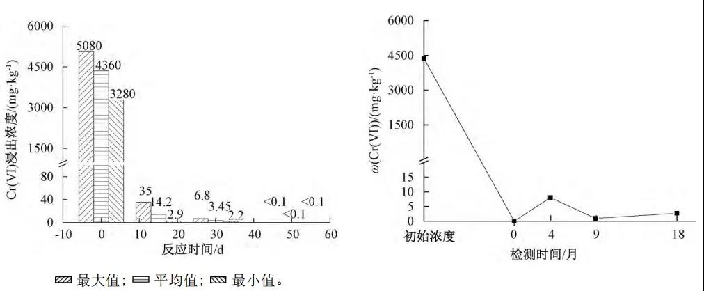 2 現(xiàn)場中試試驗(yàn)以及長期監(jiān)測下Cr(Ⅵ) 的濃度變化