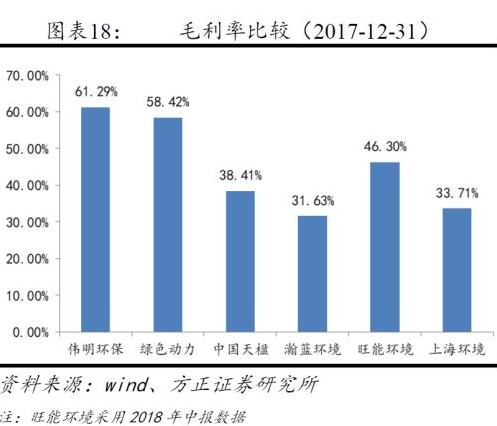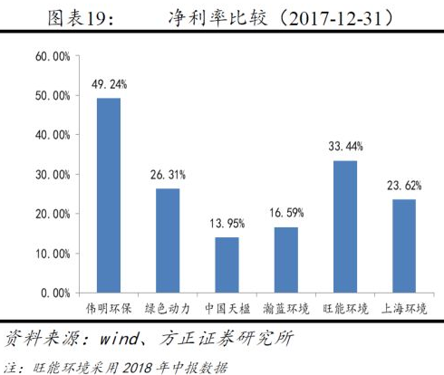 凈利率方面,2017年垃圾焚燒發(fā)電行業(yè)整體凈利率19.26%,高于其他細(xì)分行業(yè)。