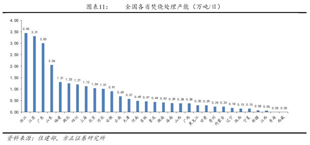 從垃圾焚燒產(chǎn)能角度看,浙江、江蘇、廣東三省垃圾焚燒產(chǎn)能超過3萬(wàn)噸/日,甘肅、貴州、內(nèi)蒙古、遼寧、陜西、寧夏、新疆、江西8省垃圾焚燒產(chǎn)能不足3000噸/日,而青海和西藏更是尚無(wú)垃圾焚燒項(xiàng)目。