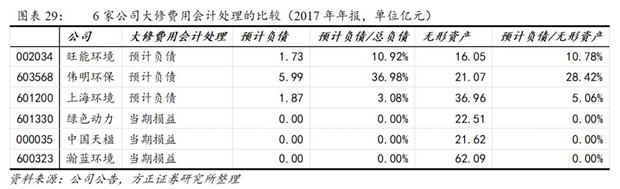 上海環(huán)境預(yù)計(jì)負(fù)債確認(rèn)比例較少,是由于公司對(duì)大修費(fèi)用的計(jì)提按照2-3年周期進(jìn)行計(jì)提;而偉明環(huán)保和旺能環(huán)境是對(duì)項(xiàng)目全生命周期的大修費(fèi)用計(jì)提,初始金額較大。