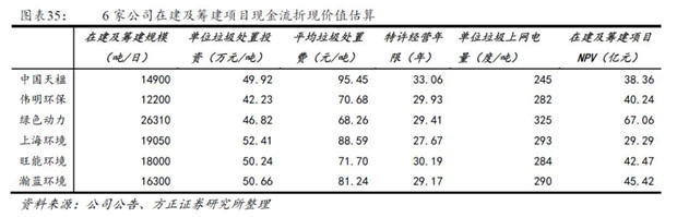 根據(jù)目前在手訂單信息統(tǒng)計(jì),我們對(duì)于7家公司在建及籌建項(xiàng)目的NPV進(jìn)行估算: