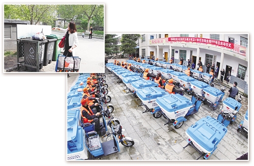 左上圖 居民的垃圾分類意識還有待提高。圖為北京市豐臺區(qū)某小區(qū)居民將沒有分類的垃圾投入分類垃圾箱。本報記者 熊 麗攝