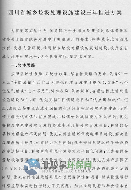 《四川省城鄉(xiāng)垃圾處理設施建設三年推進方案》