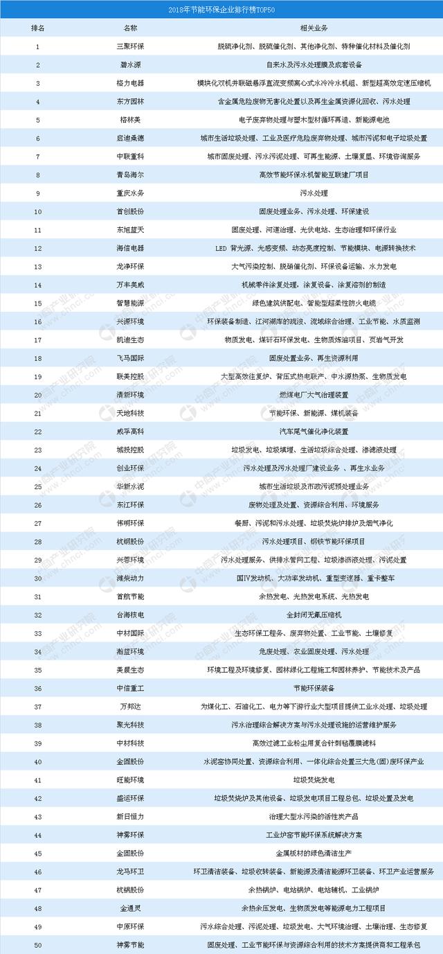 2018年節(jié)能環(huán)保企業(yè)排行榜TOP50