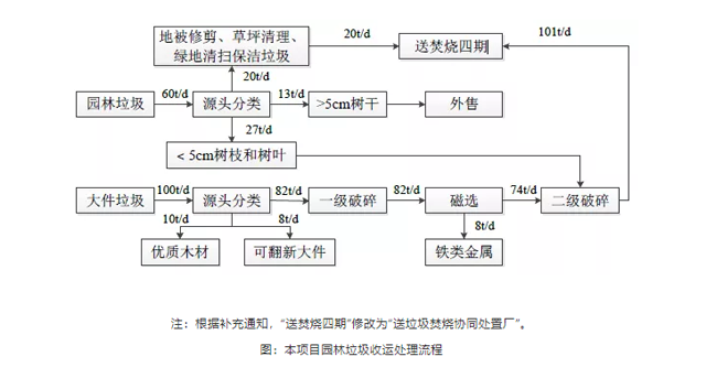 (2)綠化垃圾:針對(duì)綠化作業(yè)、臺(tái)風(fēng)天氣產(chǎn)生的樹枝、樹干、樹根進(jìn)行破碎,破碎后可以直接轉(zhuǎn)運(yùn)至垃圾焚燒發(fā)電廠焚燒發(fā)電,也可制成生物質(zhì)燃料。
