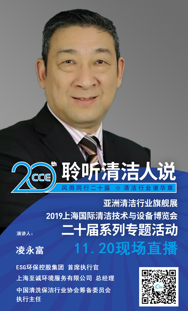 11月20日,“清潔人說”直播間即將迎來第一位嘉賓:凌永富先生。作為ESG環(huán)??毓杉瘓F(tuán)首席執(zhí)行官、上海至誠環(huán)境服務(wù)有限公司總經(jīng)理、中國清洗保潔行業(yè)協(xié)會籌備委員會執(zhí)行主任,凌總深耕行業(yè)40余年,見證行業(yè)不斷變化,率領(lǐng)企業(yè)與協(xié)會取得飛躍式的進(jìn)步。