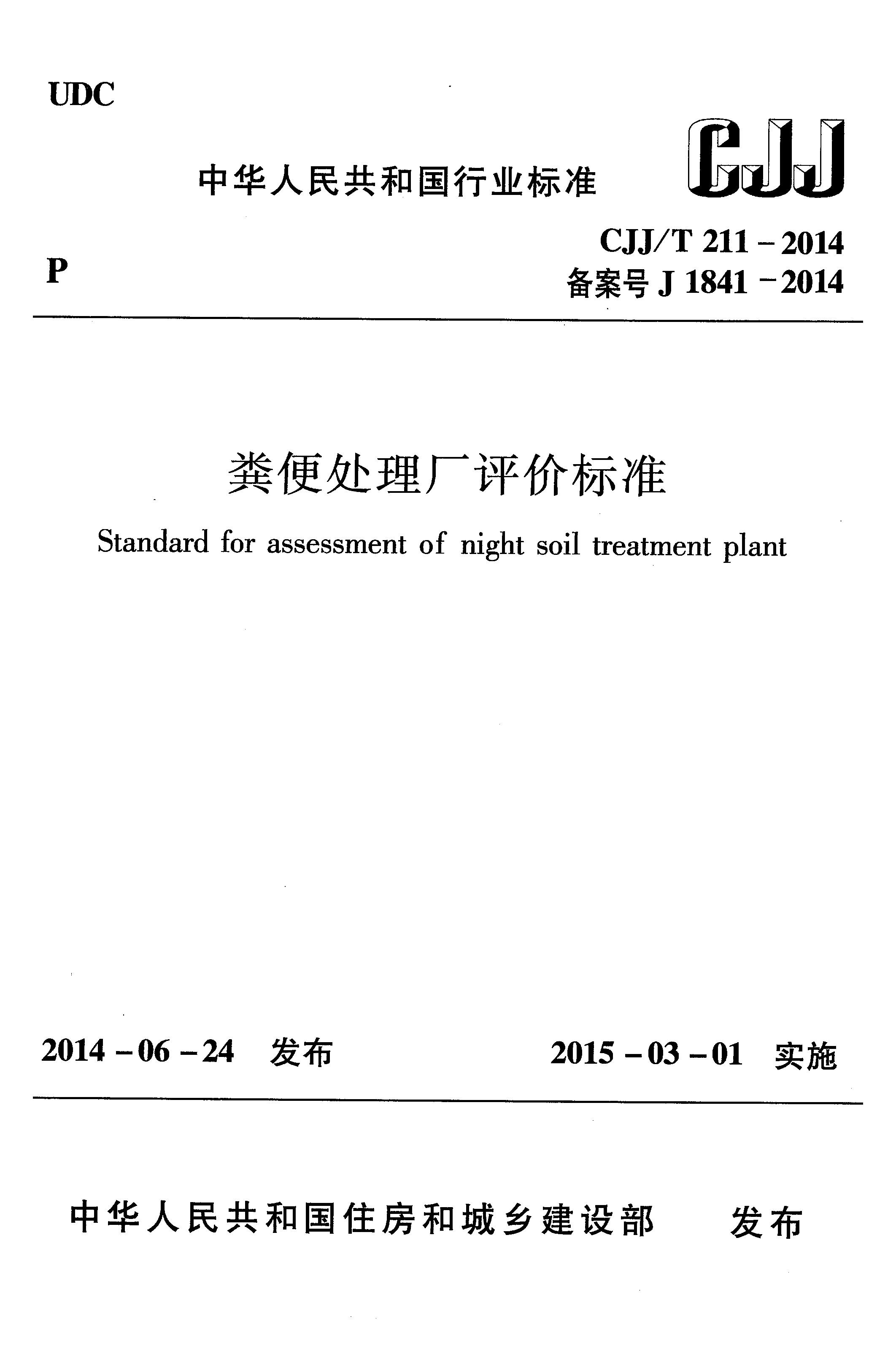 糞便處理廠評價標(biāo)準(zhǔn)(CJJ/T 211-2014)