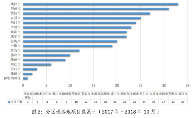 1.2017年至2018年10月,各市州累計新落地項目數(shù)情況: