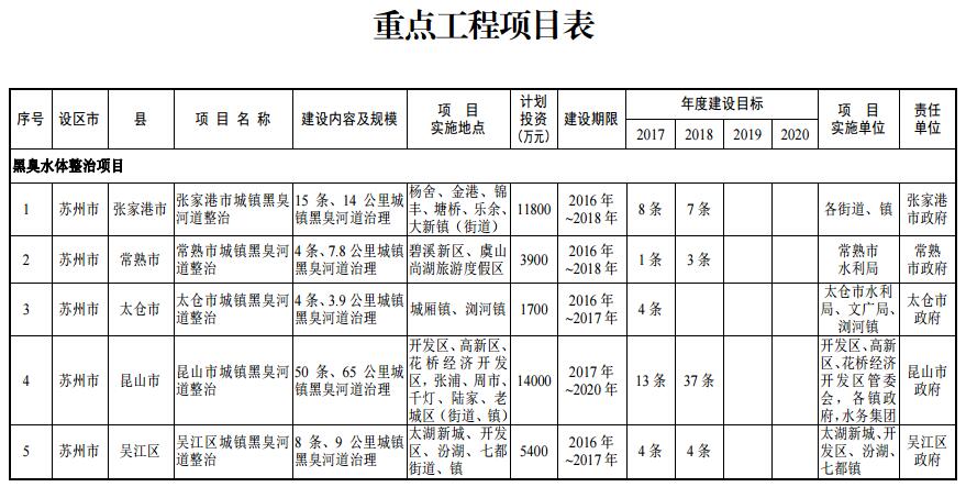 1.科學編制黑臭水體整治方案。在各地自身排查、梳理的基礎(chǔ)上,根據(jù)群眾舉報,媒體曝光,建立城鎮(zhèn)黑臭水體動態(tài)檔案。同時結(jié)合環(huán)境條件、控制目標等實際情況,按照《城市黑臭水體 — 82 — 整治工作指南》和《江蘇省城市黑臭水體整治實施方案編制大綱》要求編制黑臭水體整治方案,細化整治目標和重點整治任務(wù),并組織評審、報批和報備。方案需明確整治目標和重點任務(wù),確定技術(shù)可行、經(jīng)濟合理、效果明顯的技術(shù)方法和技術(shù)路線,以及整治措施和實施周期。各地加快整體城鎮(zhèn)黑臭水體整治實施方案編制、審批和報備,各區(qū)要在 2017 年 4 月底前編制完成黑臭水體整治方案的編制和評審,由市水利(水務(wù))局匯總、整編、組織技術(shù)論證后報蘇州市政府批準實施;各市要在 2017 年 4 月底前完成黑臭水體整治方案編制和評審,組織專家技術(shù)論證及經(jīng)水利局審查通過后報本級政府批準實施。