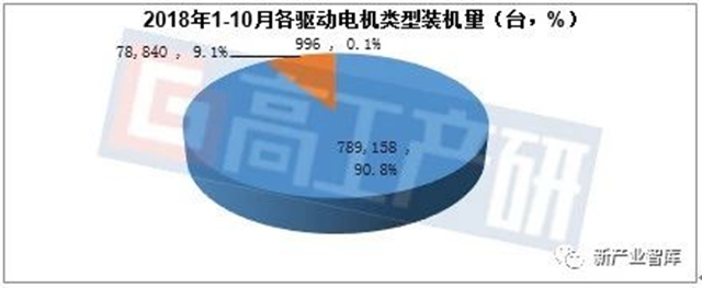 2018年1-10月新能源汽車電機裝機量分析(臺,%)
