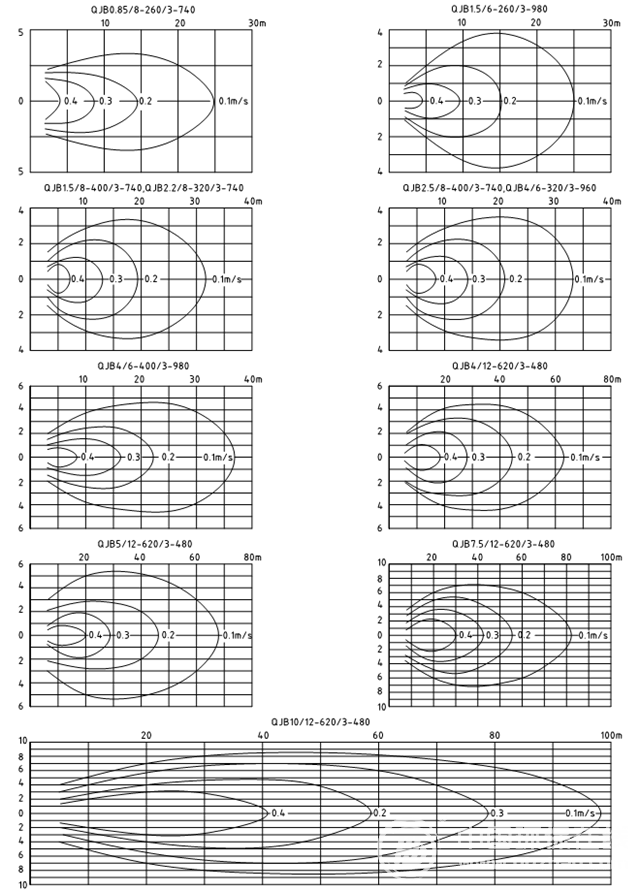 潛水攪拌機流速圖:以下流速場是在清水中,邊界水流速度為V=0.1m/s工況下。