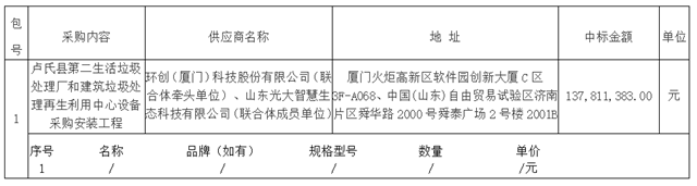 盧氏縣順天環(huán)衛(wèi)科技有限公司盧氏縣第二生活垃圾處理廠和建筑垃圾處理再生利用中心設(shè)備采購安裝工程-中標(biāo)公告 一、項(xiàng)目基本情況 1、采購項(xiàng)目編號:2021-09-7 三盧采購(2021)第306號 2、采購項(xiàng)目名稱:盧氏縣第二生活垃圾處理廠和建筑垃圾處理再生利用中心設(shè)備采購安裝工程 3、采購方式:公開招標(biāo)...