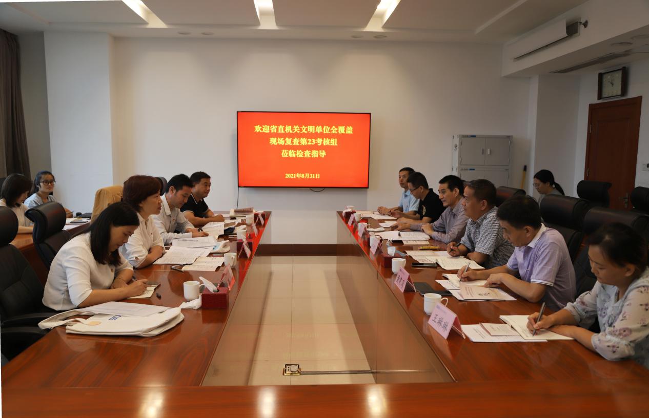 8月31日,省直機(jī)關(guān)文明單位全覆蓋現(xiàn)場(chǎng)復(fù)查考核組一行4人,來省生態(tài)環(huán)境監(jiān)測(cè)中心檢查指導(dǎo)工作。省生態(tài)環(huán)境監(jiān)測(cè)中心黨委書記張照禮等有關(guān)人員參加活動(dòng)。 考核組聽取了省生態(tài)環(huán)境監(jiān)測(cè)中心精神文明建設(shè)情況工作匯報(bào),查看了辦公室、實(shí)驗(yàn)室、監(jiān)測(cè)文化建設(shè)及生態(tài)環(huán)境大數(shù)據(jù)平臺(tái)情況,查閱了精神文明建設(shè)工作檔案,查看了“省...