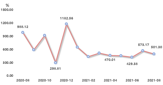 一、浙江省排污權(quán)交易指數(shù)分析 浙江省排污權(quán)交易指數(shù)盤整小幅回落。2021年8月,排污權(quán)交易指數(shù)小幅下探,收?qǐng)?bào)于501.30點(diǎn),環(huán)比下跌12.54%,與上年同期相比下降49.27%。圖 1 浙江省排污權(quán)交易指數(shù) 四項(xiàng)排污權(quán)指標(biāo):化學(xué)需氧量收?qǐng)?bào)于786.73點(diǎn)(對(duì)應(yīng)價(jià)格31469.13元/噸&middo...