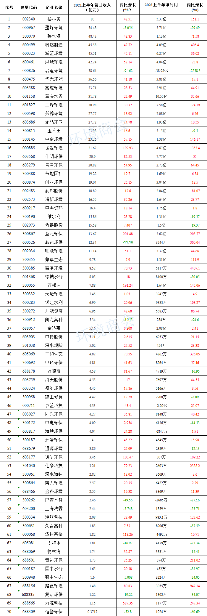 其中,清新環(huán)境2021年1-6月實現(xiàn)營業(yè)收入16.55億元,同比增長35.26%,歸屬于上市公司股東的凈利潤為1.64億元,同比增長23.77%,每股收益為0.1322元。(詳情請點擊:)高能環(huán)境持續(xù)聚焦主業(yè),固廢危廢資源化利用業(yè)務開展順利,收入及利潤較上期均有較大增長。年報顯示,公司上半年實現(xiàn)營收...