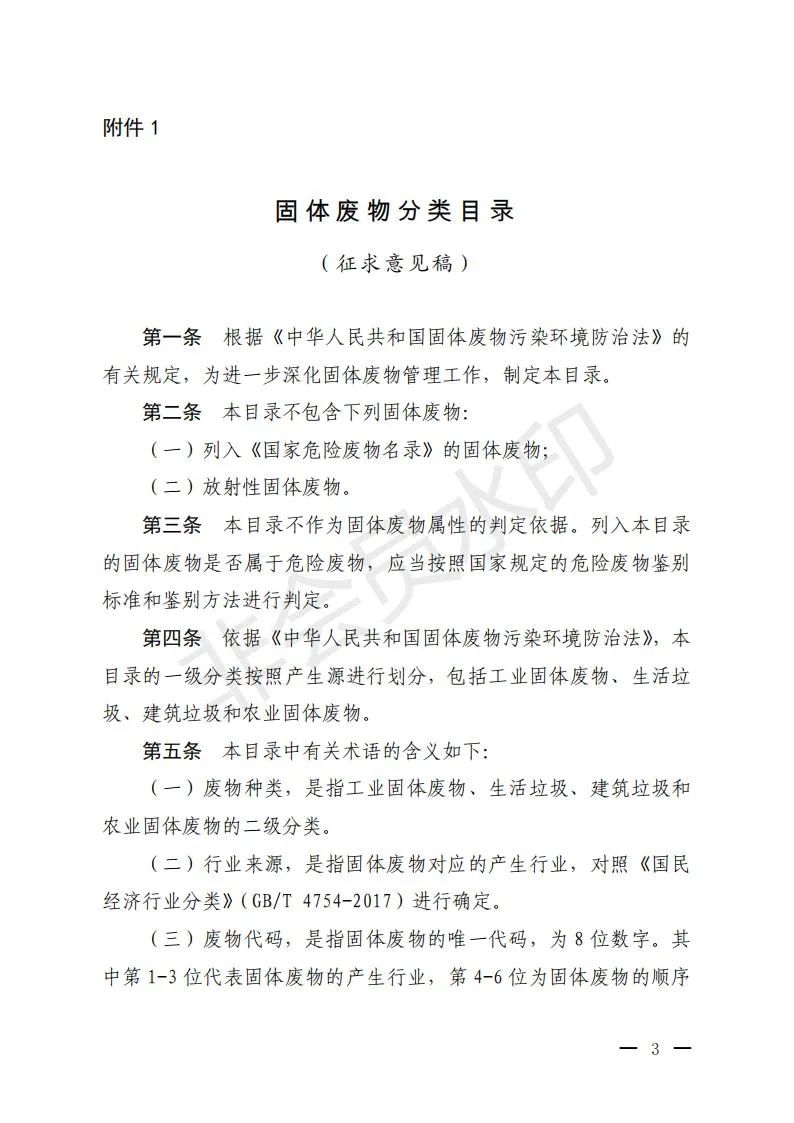 文章導(dǎo)讀為貫徹落實(shí)《中華人民共和國固體廢物污染環(huán)境防治法》,更好支撐固體廢物的規(guī)范化、精細(xì)化、信息化管理,生態(tài)環(huán)境部組織編制了《固體廢物分類目錄(征求意見稿)》。關(guān)于征求《固體廢物分類目錄(征求意見稿)》意見的函為貫徹落實(shí)《中華人民共和國固體廢物污染環(huán)境防治法》,更好支撐固體廢物的規(guī)范化、精細(xì)化、信...