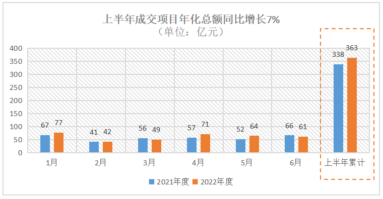 和2021年上半年相比,2022年上半年:成交環(huán)衛(wèi)項(xiàng)目年化額同比增長7%,企業(yè)采購規(guī)模同比增長36%,城市大管家市場規(guī)模同比增長42%,特許經(jīng)營項(xiàng)目開標(biāo)數(shù)量同比下降35%,年化額億元大標(biāo)數(shù)量同比增長47%,市場格局(年化額百強(qiáng)企業(yè)構(gòu)成)出現(xiàn)明顯變化。1、成交項(xiàng)目年化額同比增長7%今年上半年,環(huán)衛(wèi)市場...