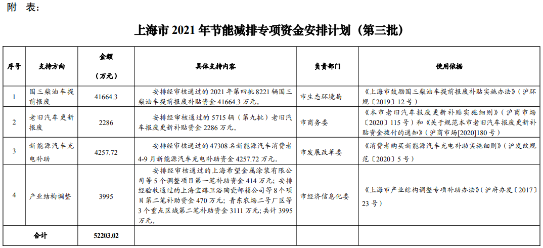 滬發(fā)改環(huán)資〔2021〕80號 市生態(tài)環(huán)境局,市商務(wù)委,市經(jīng)濟(jì)信息化委: 你們報來的資金使用計劃申請函(滬環(huán)函〔2021〕45號,滬商市場〔2021〕132號、滬經(jīng)信產(chǎn)〔2021〕390號)及有關(guān)材料已收悉。經(jīng)研究,現(xiàn)將資金安排計劃下達(dá)給你們,共4項,計劃下達(dá)節(jié)能減排專項資金52203.02萬元(詳見...