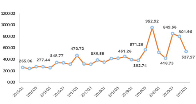 一、浙江省排污權(quán)交易指數(shù)分析 今年以來(lái),浙江省排污權(quán)交易指數(shù)呈下行態(tài)勢(shì)。2021年第一季度,浙江省排污權(quán)交易指數(shù)延續(xù)上季度跌勢(shì),快速下跌,指數(shù)收?qǐng)?bào)于537.97點(diǎn),環(huán)比下跌32.92%,同比上升1.98%。 圖 1 浙江省排污權(quán)交易指數(shù) 四項(xiàng)排污權(quán)指標(biāo):化學(xué)需氧量收?qǐng)?bào)于380.31點(diǎn)(對(duì)應(yīng)價(jià)格152...