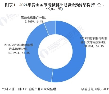 2021年4月9日,國(guó)家財(cái)政部發(fā)布《關(guān)于下達(dá)2021年節(jié)能減排補(bǔ)助資金預(yù)算的通知》,此次下達(dá)的補(bǔ)助資金共97.7443億元,其中包含2019年度節(jié)能與新能源公交車(chē)運(yùn)營(yíng)補(bǔ)助50.884億元,占比52.1%;2016-2019年度新能源汽車(chē)購(gòu)置補(bǔ)貼40.8904億元,占比41.8%;高效電機(jī)推廣補(bǔ)貼5....