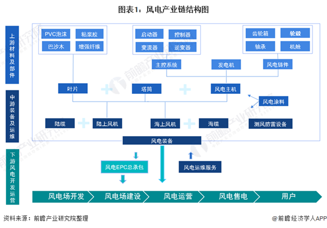 江蘇省風(fēng)電產(chǎn)業(yè)發(fā)展領(lǐng)先 風(fēng)電產(chǎn)業(yè)鏈分為上游材料及零部件、中游風(fēng)機(jī)整機(jī)及運(yùn)維、下游風(fēng)電開(kāi)發(fā)運(yùn)營(yíng)。上游風(fēng)機(jī)部件中的葉片是產(chǎn)業(yè)鏈中供應(yīng)最緊張的環(huán)節(jié),風(fēng)電葉片的關(guān)鍵材料巴沙木和PVC泡沫依賴(lài)進(jìn)口。目前,風(fēng)電產(chǎn)業(yè)鏈代表企業(yè)主要集中在江蘇、北京、上海、山東等地區(qū),其中,江蘇風(fēng)電產(chǎn)業(yè)發(fā)展領(lǐng)先。 1、風(fēng)電產(chǎn)業(yè)鏈全景...