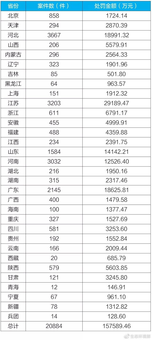 近日,生態(tài)環(huán)境部向媒體通報(bào)各地2021年1-3月環(huán)境行政處罰案件與《環(huán)境保護(hù)法》配套辦法的執(zhí)行情況。 一、環(huán)境行政處罰案件辦理情況 2021年1-3月,全國(guó)共下達(dá)環(huán)境行政處罰決定書2.09萬(wàn)份,罰沒(méi)款數(shù)額總計(jì)15.76億元,案件平均罰款金額7.55萬(wàn)元。 2021年1-3月,行政處罰案件數(shù)量排名前五...