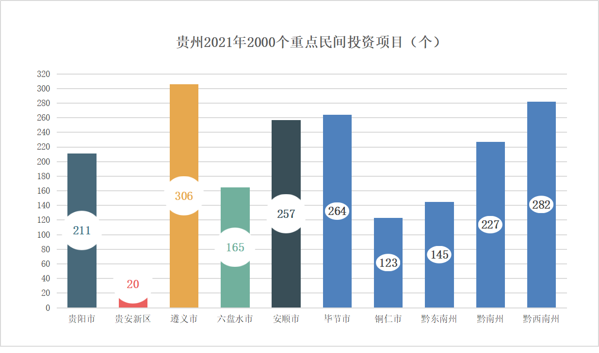 《關(guān)于大力推進(jìn)實(shí)施2021年2000個(gè)重點(diǎn)民間投資項(xiàng)目的通知》印發(fā),貴州要求扎實(shí)有效推進(jìn)民間投資重點(diǎn)項(xiàng)目實(shí)施,以旬保月,以月保季,確保完成全年投資目標(biāo)任務(wù),實(shí)現(xiàn)2021年全省民間投資占比提高到45%左右的預(yù)期目標(biāo)。 據(jù)統(tǒng)計(jì),2000個(gè)項(xiàng)目按地區(qū)分遵義市最多,達(dá)306個(gè);按類別分,生態(tài)環(huán)保項(xiàng)目有39個(gè)...