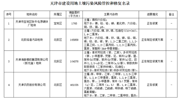 市生態(tài)環(huán)境局 市規(guī)劃資源局關(guān)于更新《天津市建設(shè)用地土壤污染風(fēng)險(xiǎn)管控和修復(fù)名錄》的通知各區(qū)生態(tài)環(huán)境局、規(guī)劃資源分局: 為貫徹落實(shí)《中華人民共和國土壤污染防治法》、《天津市土壤污染防治條例》,加強(qiáng)我市建設(shè)用地土壤環(huán)境管理,實(shí)行建設(shè)用地土壤污染風(fēng)險(xiǎn)管控和修復(fù)名錄制度,根據(jù)我市建設(shè)用地地塊風(fēng)險(xiǎn)評估和治理修復(fù)...