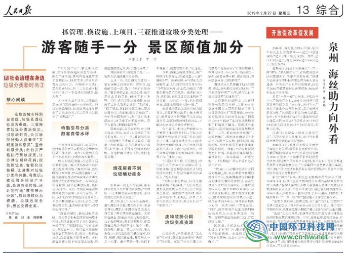 在旅游城市特別是景區(qū),垃圾處理往往成為難題。三亞探索垃圾分類新做法,引領新時尚:公共場所特勤人員兼任“文明旅游糾察員”,宣傳垃圾分類;出臺并嚴格執(zhí)行禁放規(guī)定,讓沙灘告別煙花屑;投放顏值高、智能化垃圾桶,讓游客對垃圾分類有興趣、有意識;建設循環(huán)經濟產業(yè)園,處理各類垃圾,還計劃打造“廢物展示公園”,將垃...