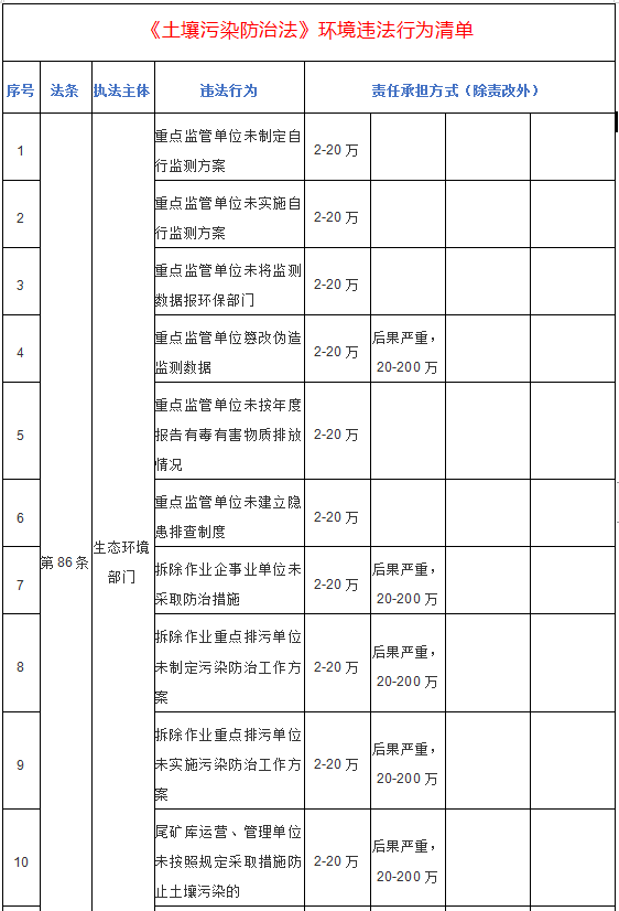 《土壤污染防治法》列舉了近50種環(huán)境違法行為,其中對應的行政執(zhí)法主體包括生態(tài)環(huán)境主管部門、農業(yè)農村主管部門、林業(yè)與草原主管部門、自然資源主管部門、工業(yè)和信息化主管部門等等?!锻寥牢廴痉乐畏ā吩诜韶熑畏矫鏀U充了行政拘留的適用范圍,并對多個環(huán)境違法行為設定“雙罰”,加大了對違法者的處罰力度。筆者對《土...