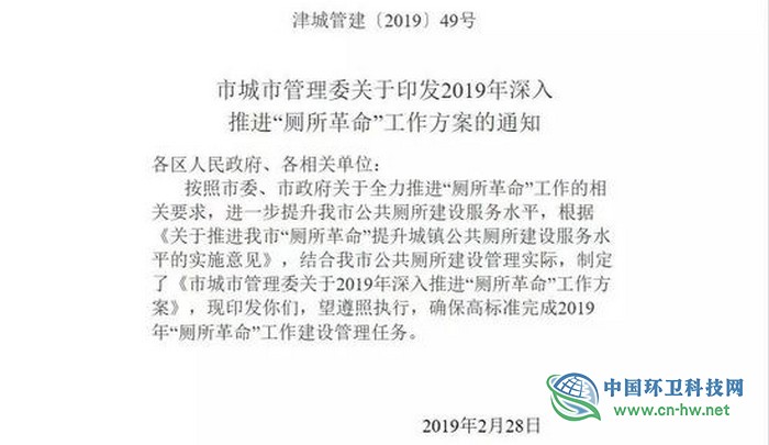 2月28日,天津政務網發(fā)布《市城市管理委關于印發(fā)2019年深入推進“廁所革命”工作方案的通知》。通知明確:天津全市2019年建成區(qū)內新建提升改造公廁200座以上,并且強化公廁管理,推進公廁智能化管理,全面提升公廁服務品質。天津將全面推動二類以上公廁配置取紙設備、洗手液服務項目,試點推行增設wifi服...
