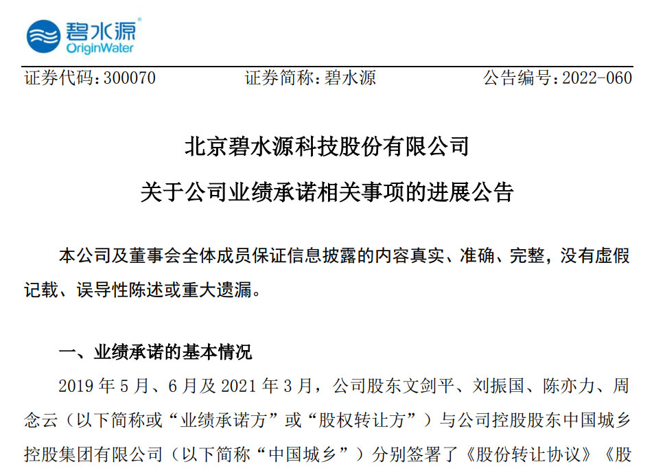 始于2018年的環(huán)保企業(yè)PPP暴雷潮,直到現(xiàn)在還余波未平。最新一則案例是,5月9日,碧水源董事會(huì)發(fā)布公告稱,公司股東文劍平、劉振國(guó)、陳亦力、周念云在與中國(guó)城鄉(xiāng)控股集團(tuán)有限公司(下稱“中國(guó)城鄉(xiāng)”)股份轉(zhuǎn)讓時(shí)曾作出業(yè)績(jī)承諾補(bǔ)償約定。而2021年公司的業(yè)績(jī)低于該約定,觸發(fā)業(yè)績(jī)補(bǔ)償義務(wù),需補(bǔ)償約10.04億...