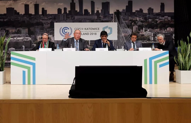 當(dāng)?shù)貢r(shí)間2018年12月12日,基礎(chǔ)四國新聞發(fā)布會(huì)在聯(lián)合國氣候變化卡托維茲大會(huì)新聞發(fā)布廳舉行,表達(dá)四國希望推動(dòng)卡托維茲大會(huì)取得成功、共同維護(hù)多邊機(jī)制有效性的決心和立場。中國應(yīng)對氣候變化事務(wù)特別代表解振華、印度環(huán)境部副部長阿倫·梅塔(A K Mehta)、南非代表團(tuán)團(tuán)長德里克&middo...