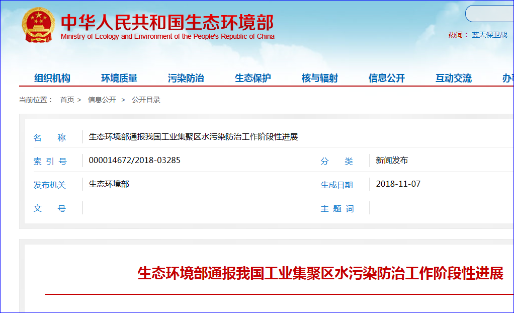 11月7日,生態(tài)環(huán)境部通報(bào)我國工業(yè)集聚區(qū)水污染防治工作階段性進(jìn)展。 為落實(shí)《水污染防治行動計(jì)劃》(以下簡稱《水十條》)有關(guān)工業(yè)集聚區(qū)應(yīng)按規(guī)定建成污水集中處理設(shè)施,安裝自動在線監(jiān)控裝置等要求,生態(tài)環(huán)境部會同相關(guān)部門督促指導(dǎo)各地,狠抓工業(yè)集聚區(qū)水污染防治。 截至2018年9月底,全國2411家涉及廢水排...